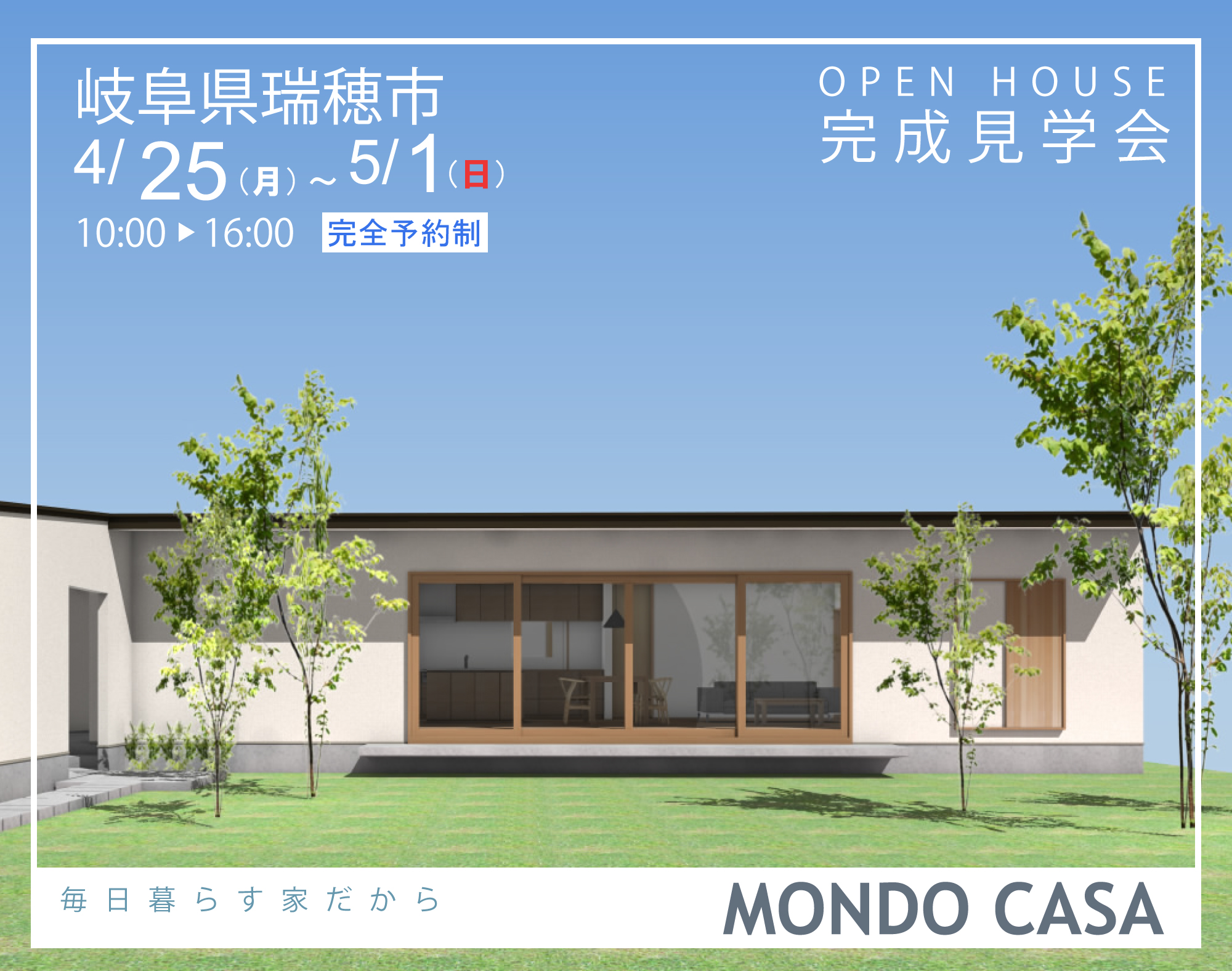 「瑞穂の平屋」の完成見学会を開催いたします。