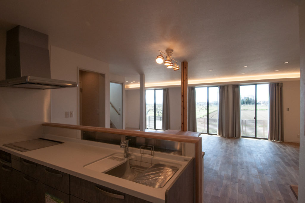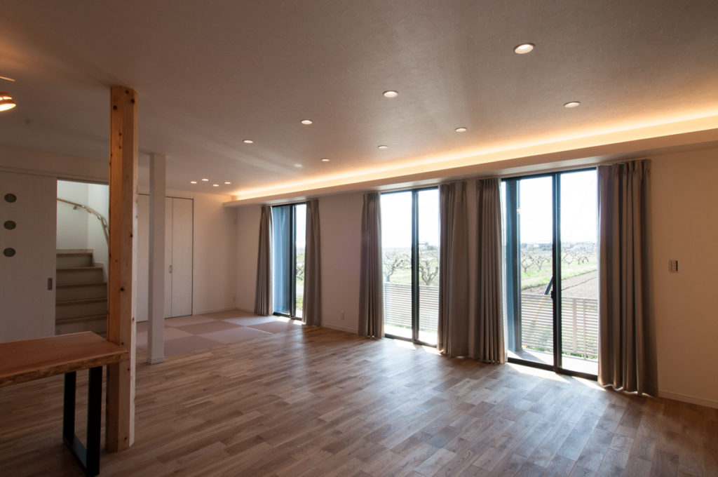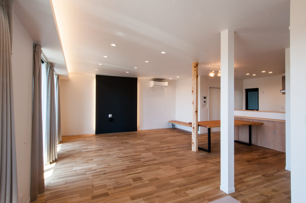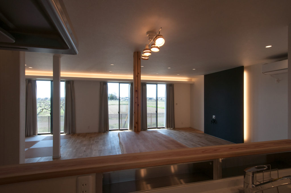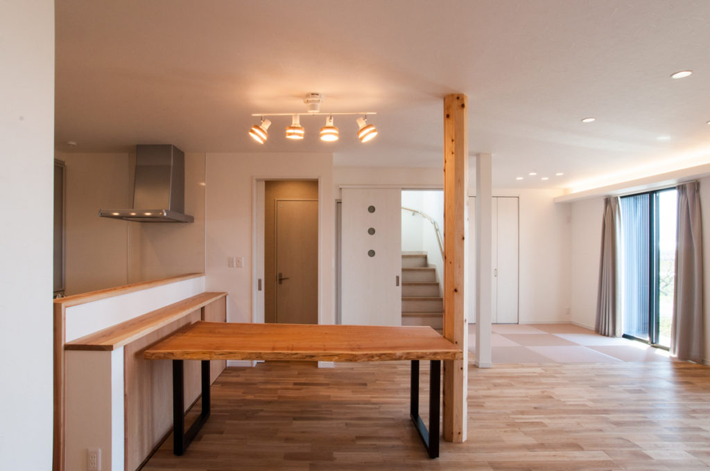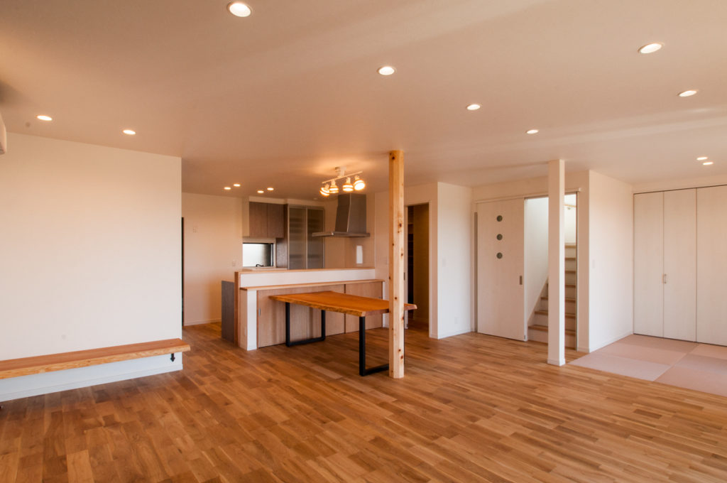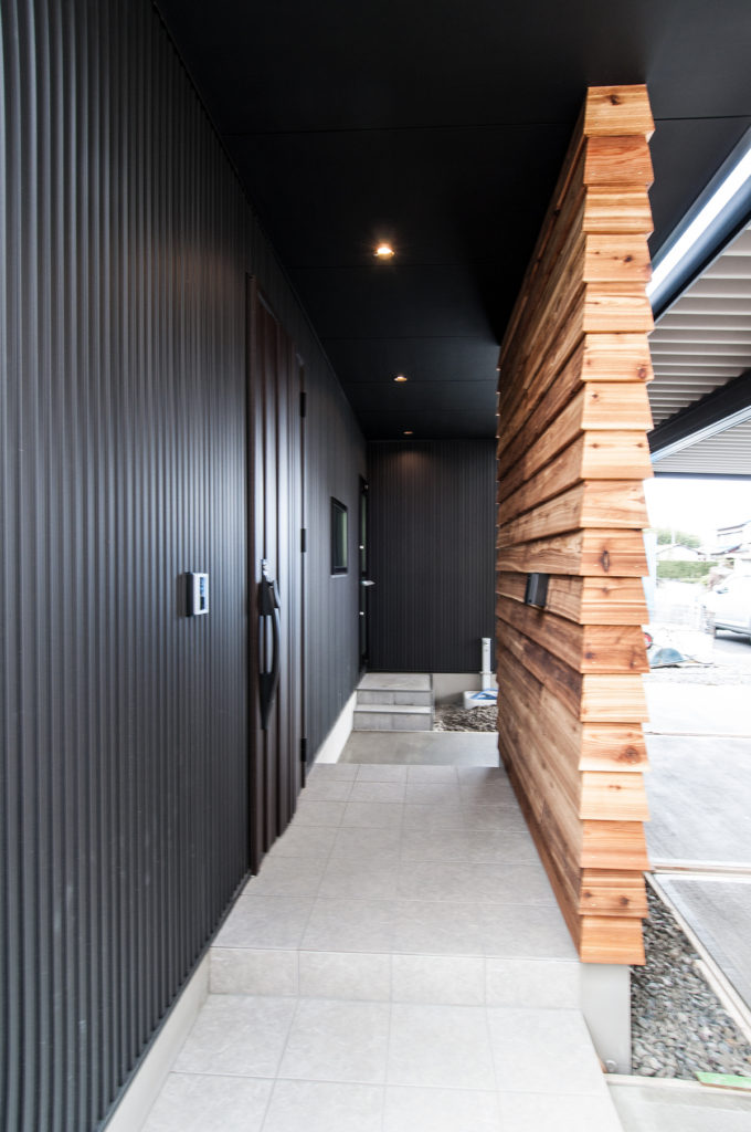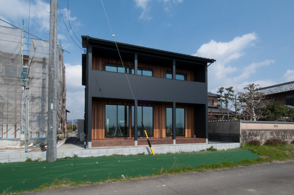本巣市に建つ木造2階建ての住宅です。 お施主さまの想いのつまった住まいになりました。 ガルバリウム鋼板、レッドシダーの外壁と、広いリビングが特徴です。